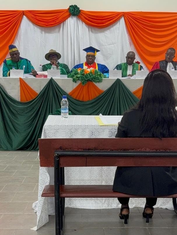 Professeur ordinaire et Doyen honoraire de la Faculté de Droit, Jean-Louis Esambo Kangashe présidant le 26 septembre 2025 un jury de thèse de doctorat en droit public à l’UFR Sciences juridique, administrative et politique de l’université Alassane Ouattara de Bouake en Côte d’Ivoire